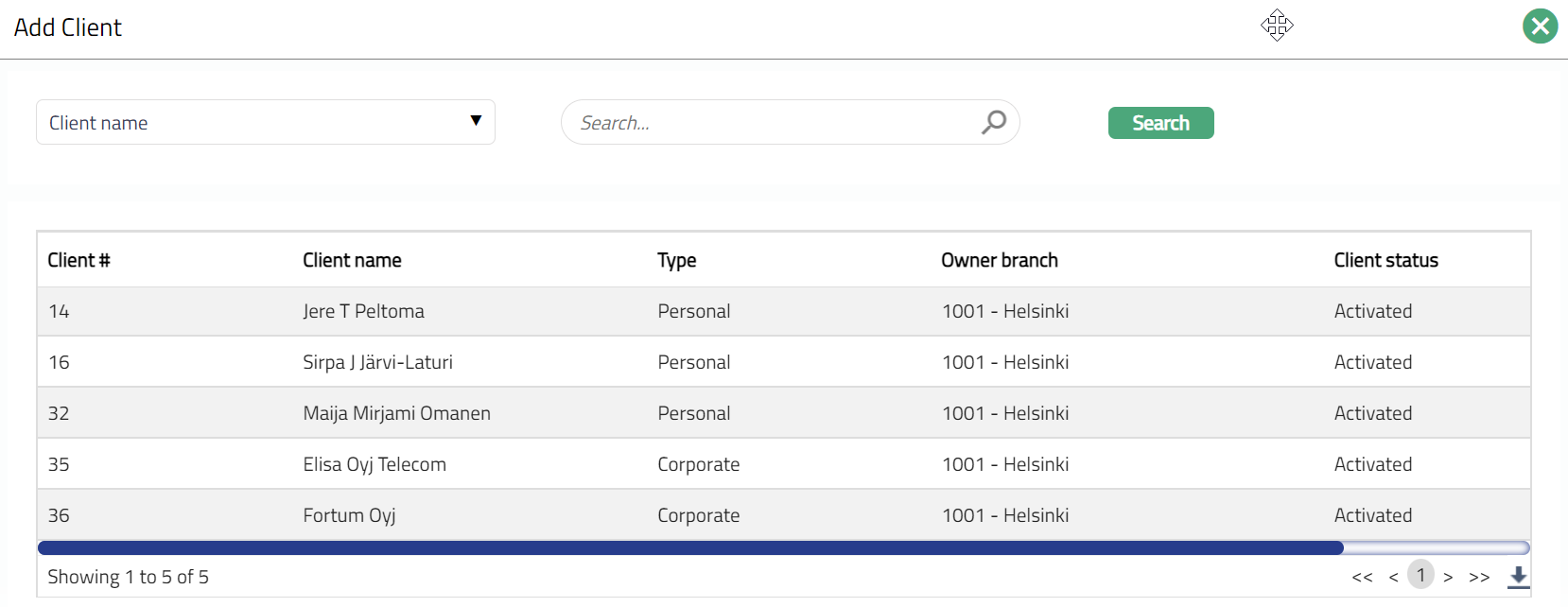 Select the Account Status from the dropdown list of active account statuses maintained under Admin > Status > Client account status. Any, Activated, Blocked and Reopened in the dropdown list are the pre-shipped values.