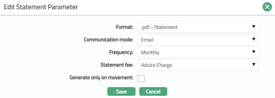 Select the interest liquidation Frequency for the interest receivable accrual from the drop-down list. Available options are: Daily, Monthly, Quarterly, Semi-annual and Annual