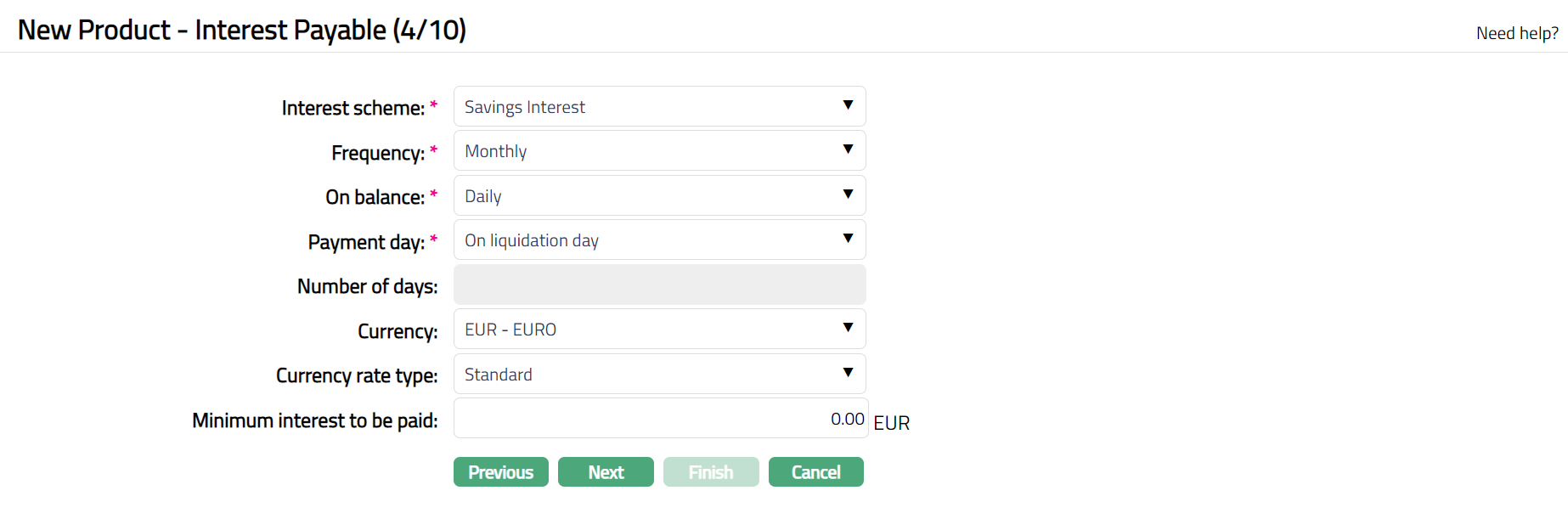 Click Next. The New Product -- Interest Payable (4/10) page appears.