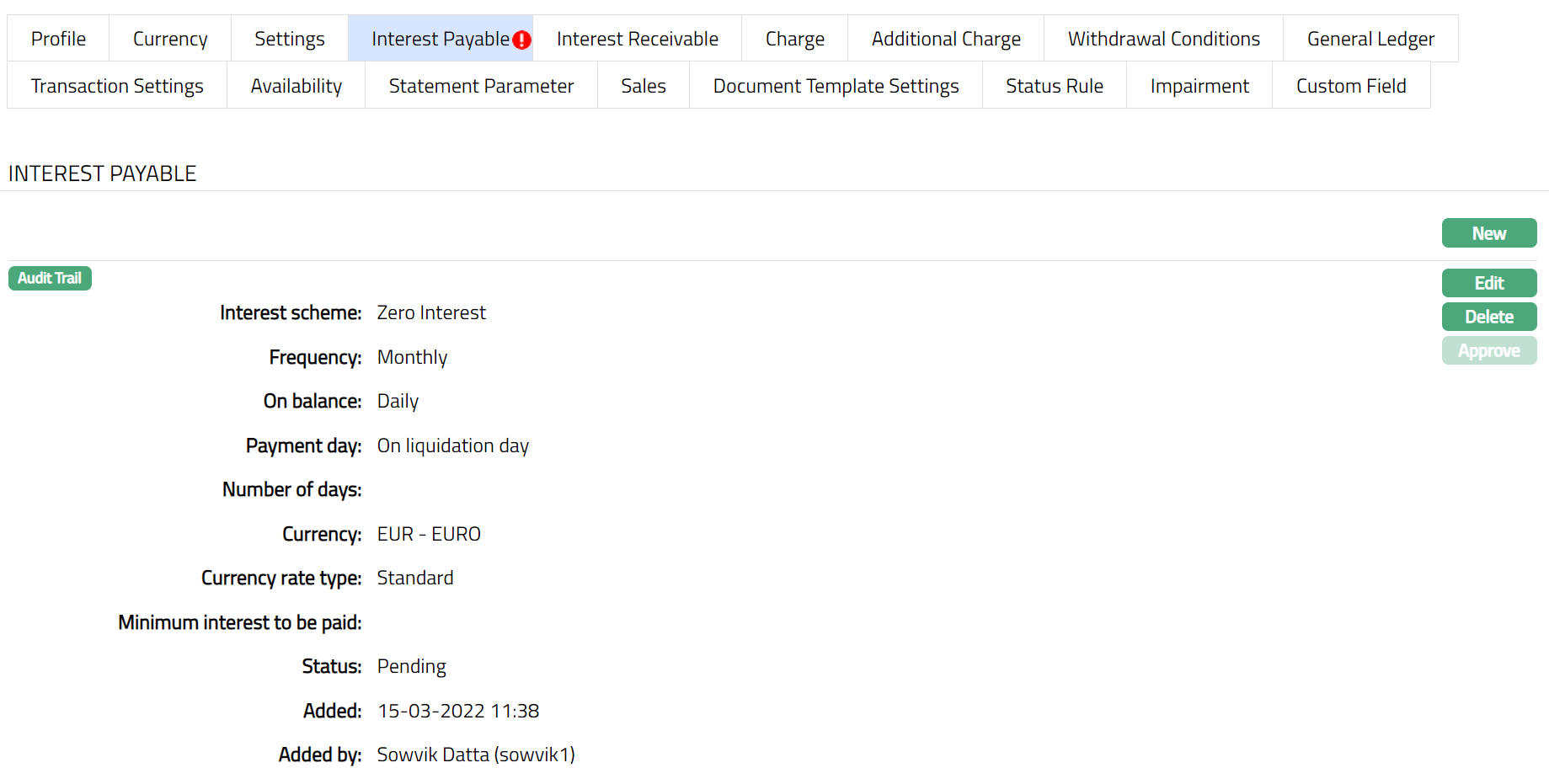 Select the Interest scheme that would be applicable to the accounts under this product from the drop-down list of interest scheme maintained under Admin > Pricing > Interest > Interest Scheme