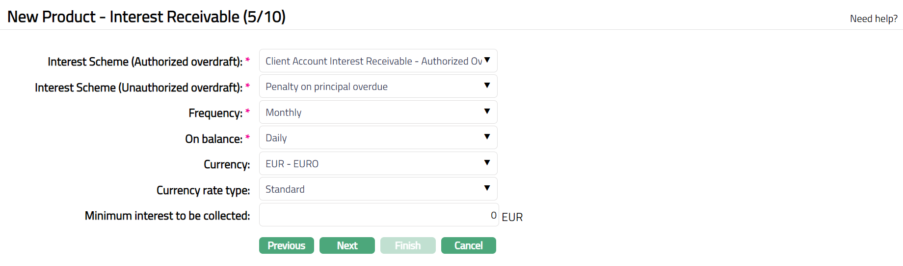- Click Next. The New Product -- Interest Receivable (5/10) page appears.