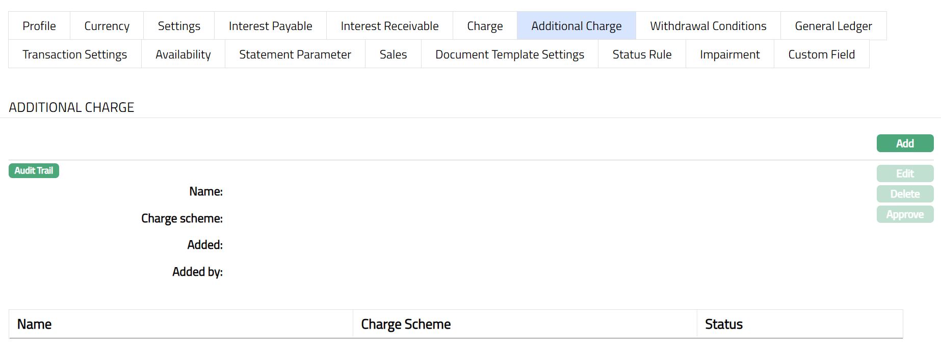 Note: Any additional charges, apart from those defined above, can be defined for the Product using Additional Charges tab in edit mode.