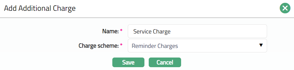 If you want to collect service charges, select the Service charge from the list of Periodic, Flat or Banded charges for which Treat as receivable is No maintained under Admin >Pricing > Charges > Charge Schemes. If banded, the Current Client balance will be the basis for the charge
