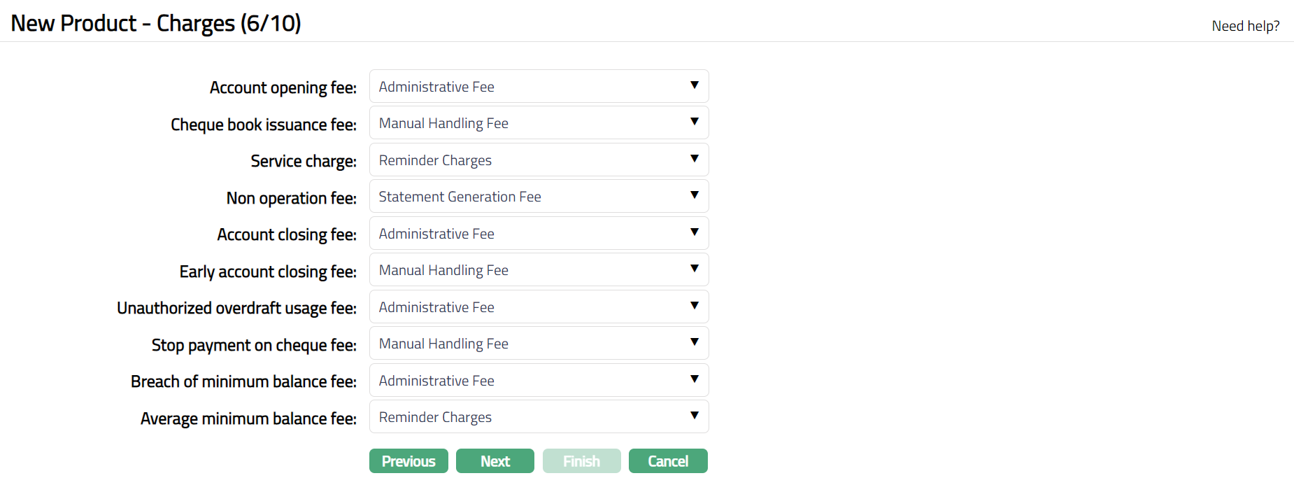 - Click Next. The New Product -- Charges (6/10) page appears.