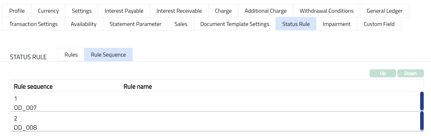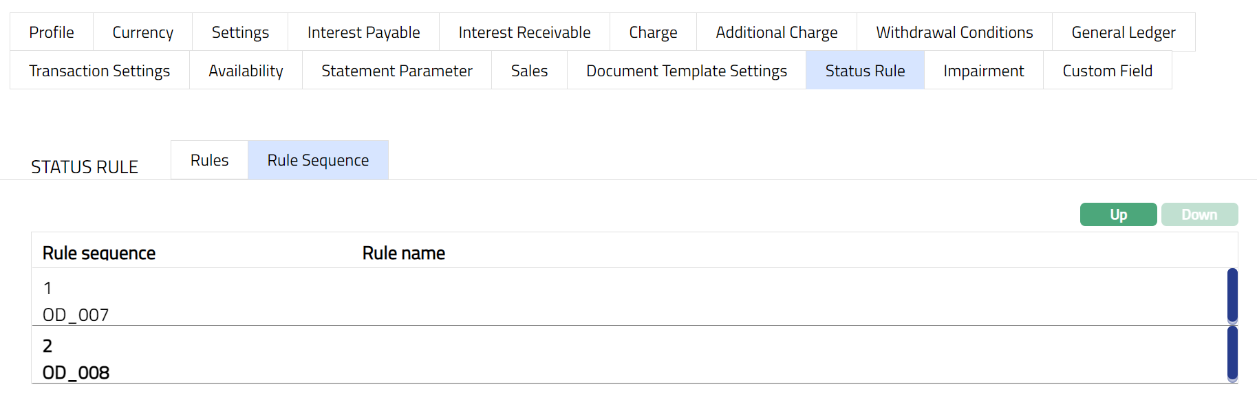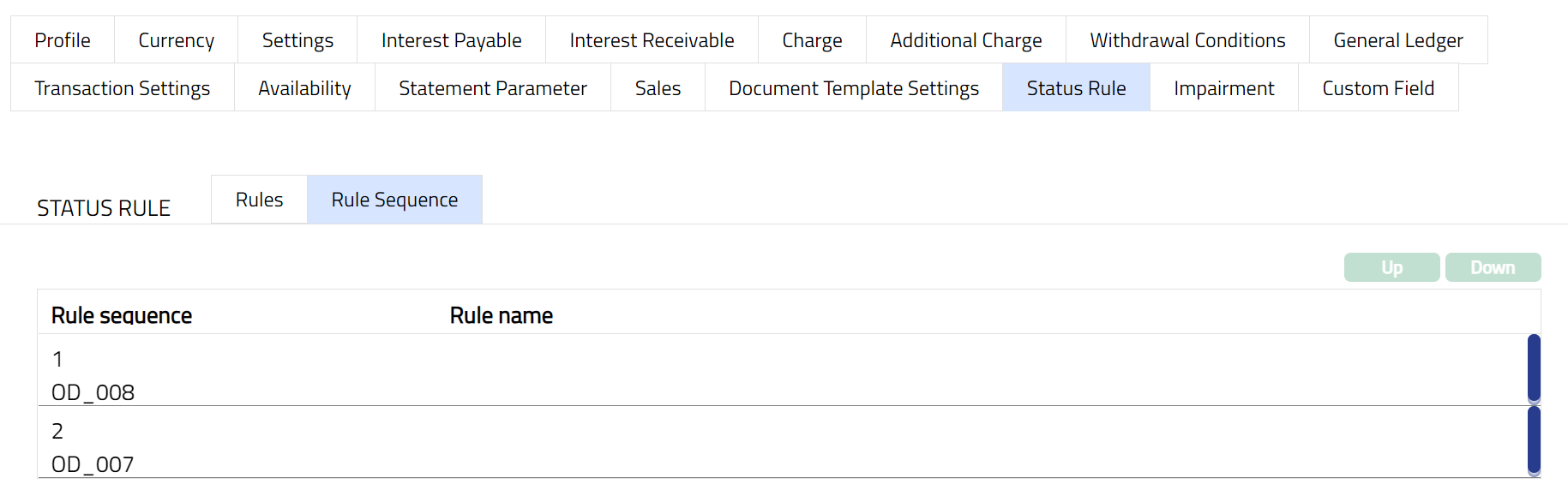 Access Product page. Click Status Rule, and then click Rule Sequence tab.