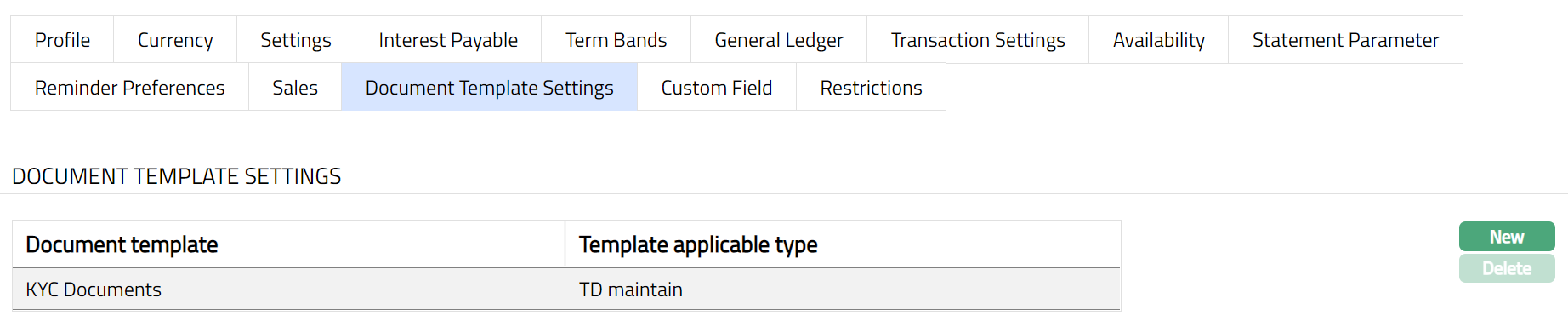 The following are the tabs in a Term Deposit Product: