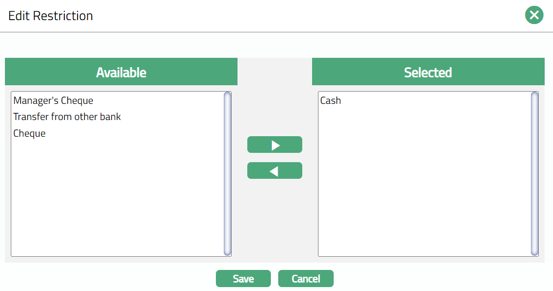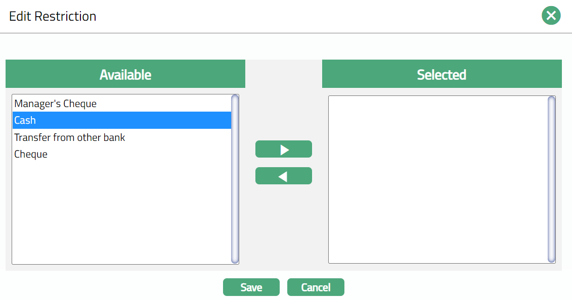 Select the Funding method from the drop-down list. This denotes the method in which the amount is to be transferred for opening term deposit. The following are the options available in Aura: