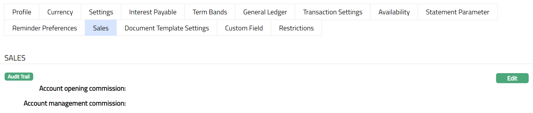 Using this tab, you can view and maintain the sales commission for the product.