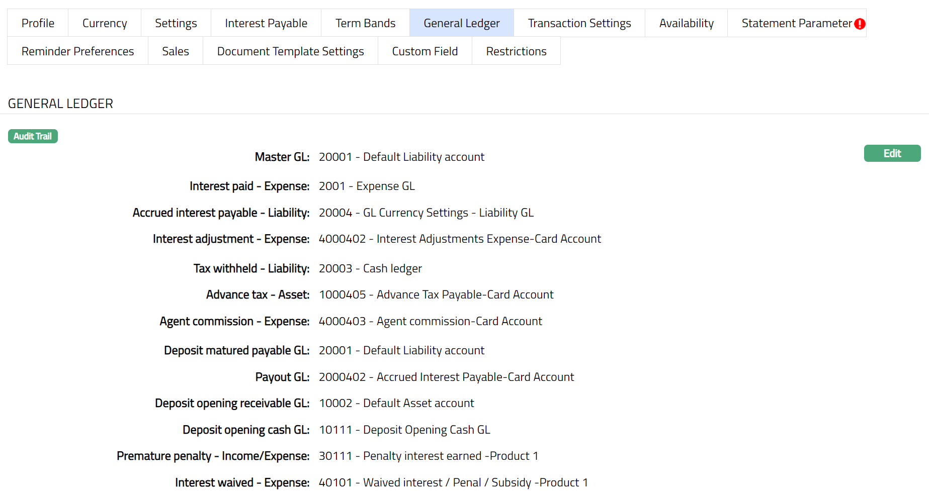 Click Edit. Edit General Ledger page appears.