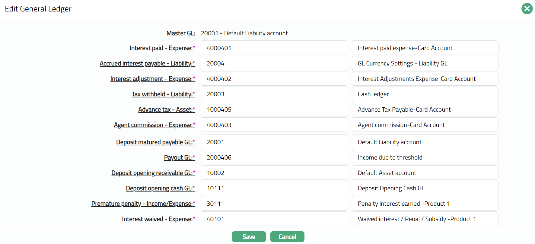 Click Save. The General Ledger page appears with the edited details.