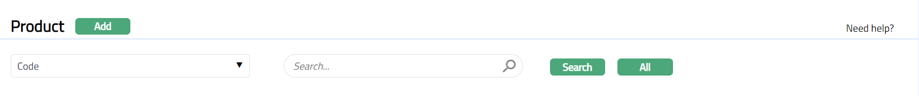 - Access Retail menu, click Settings, and then Product. The Product Search page appears. All Products available in Aura appear on the page.