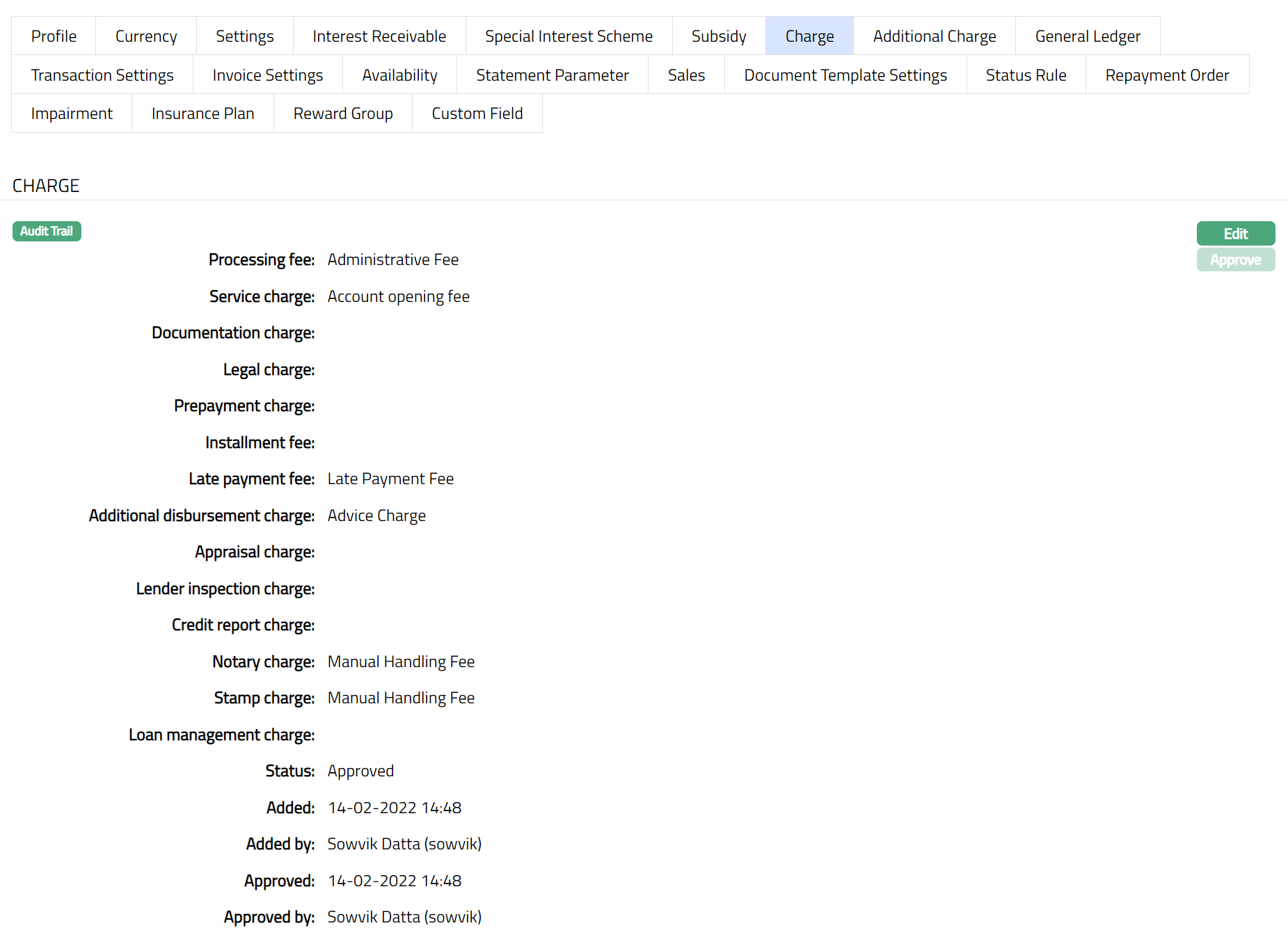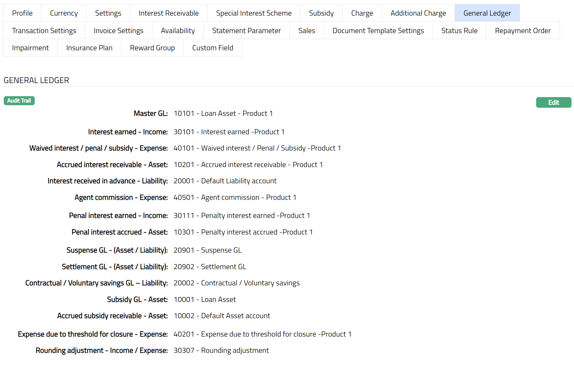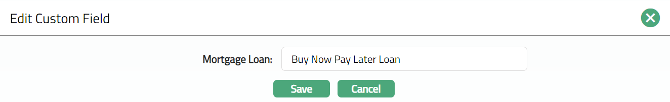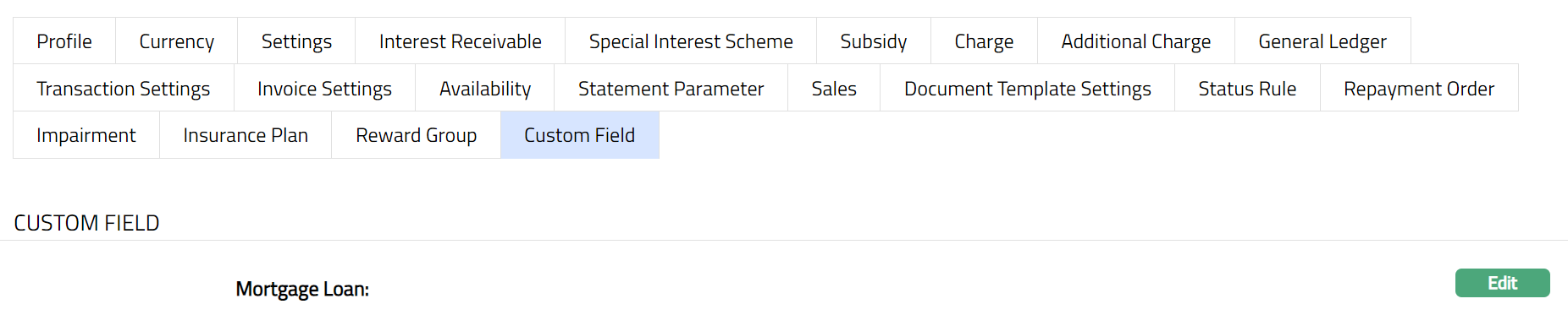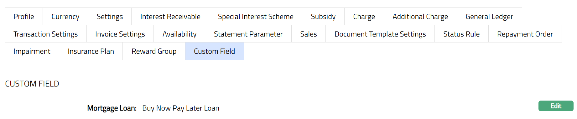 Click Edit. The Edit Custom Field page appears. In the following illustration, one custom field Loan Category has been mapped to the Product as shown below: