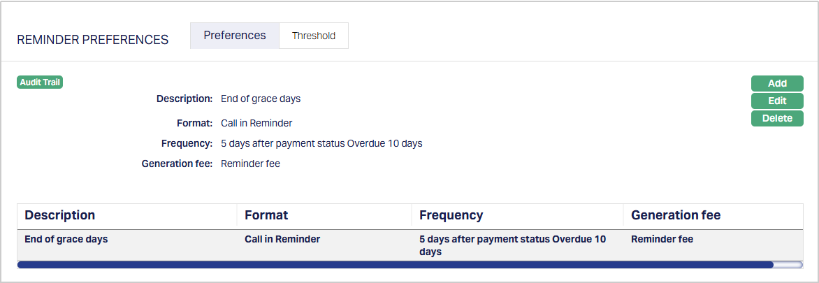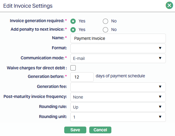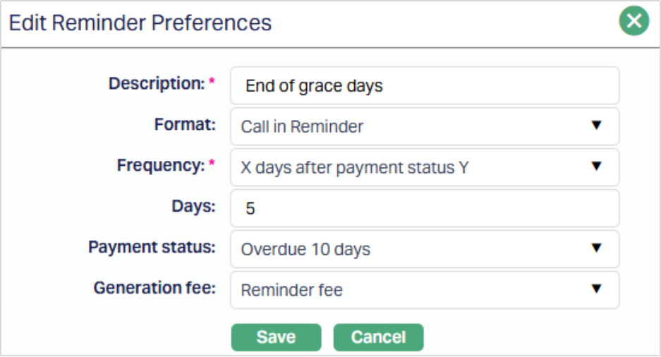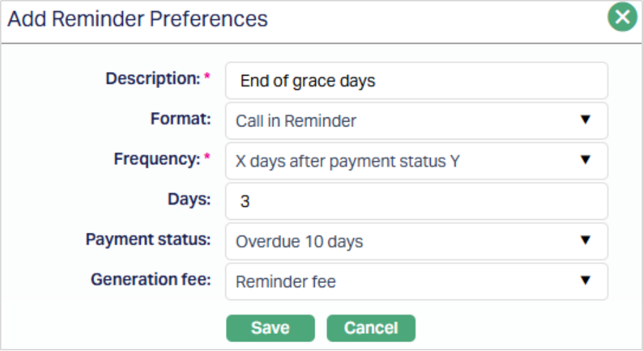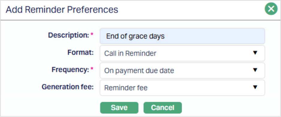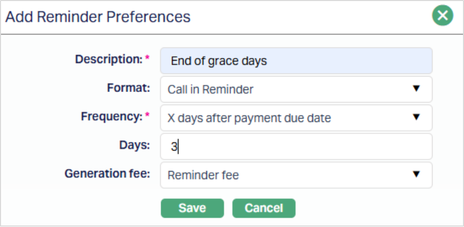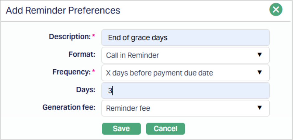 Enter the number of days after which the penalty interest or late payment fees for any payment defaults will start applying in Grace days for penalty. By default, this is set to 0; and in such a case, the penalty interest or late payment fee will be applied on the Payment Due Date in case of any payment default.