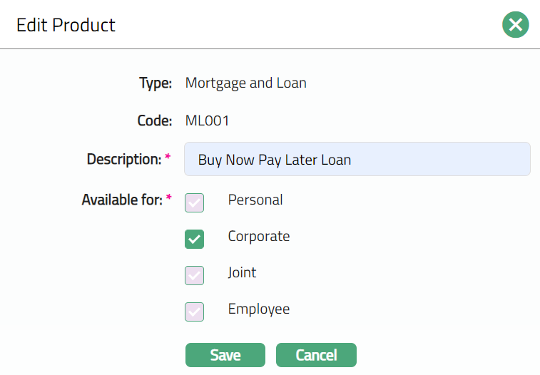 Product maintenance menu allows you to maintain the details of Mortgage and Loan Products that are offered by your bank to its customers. Once the Product is created, the values in these Products are defaulted to the loan accounts that are created under the Product, with an option to change the details at the account level.