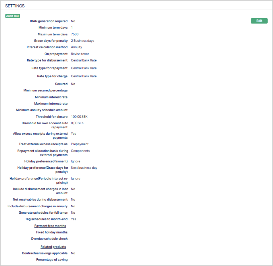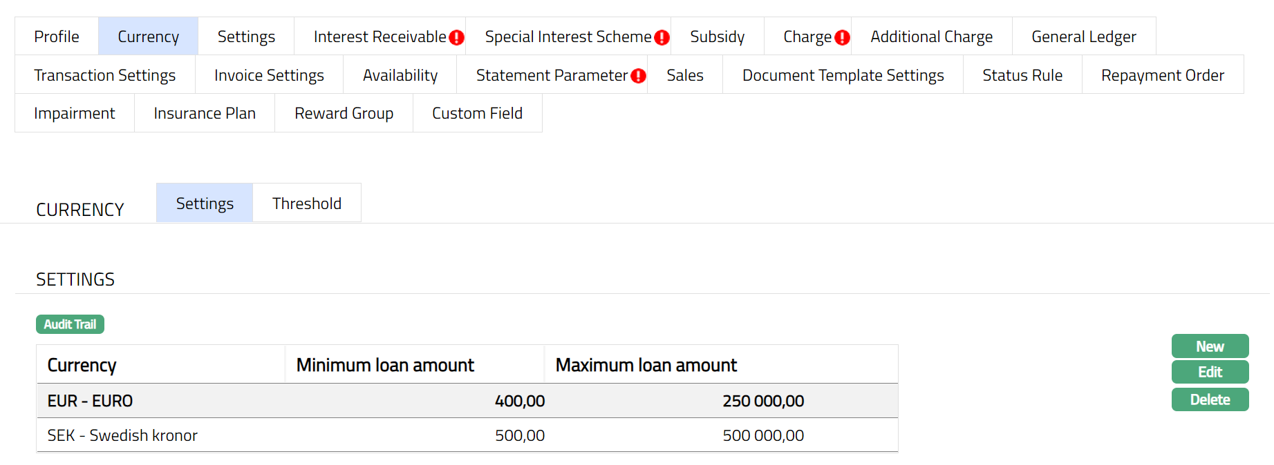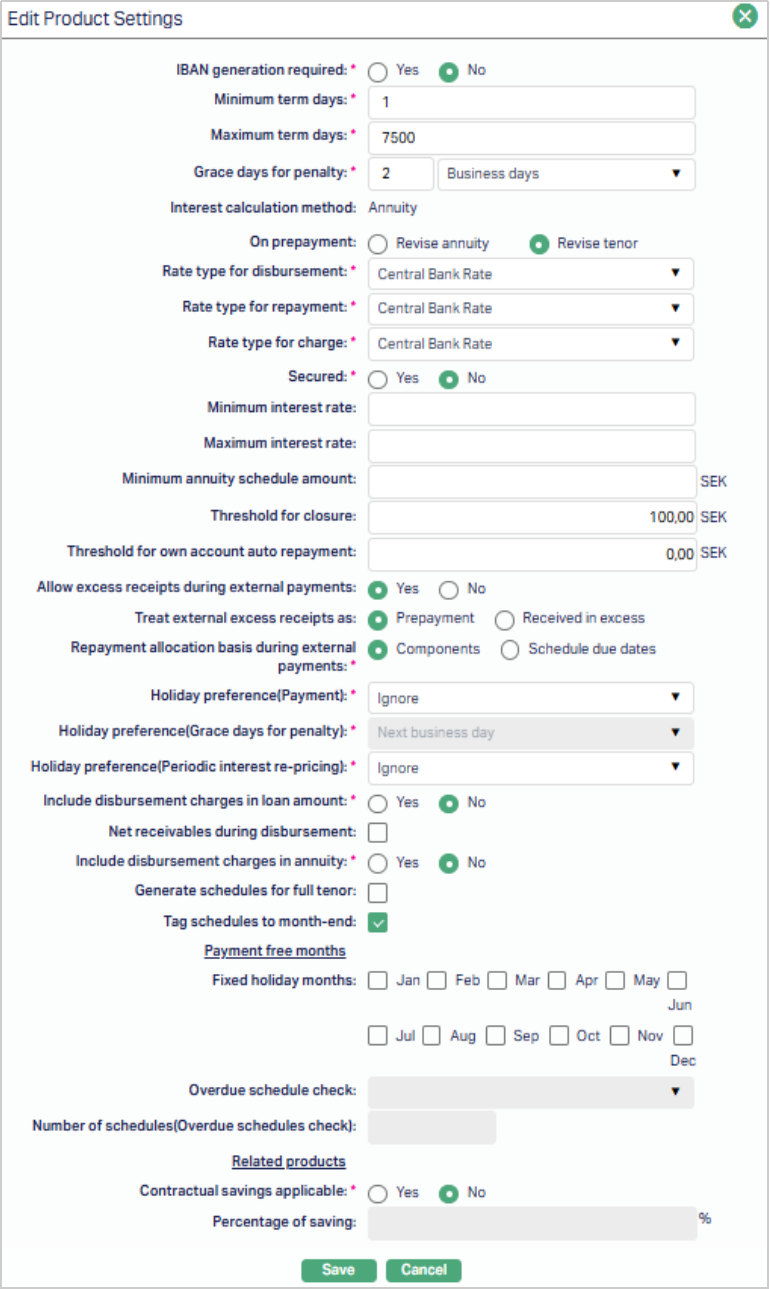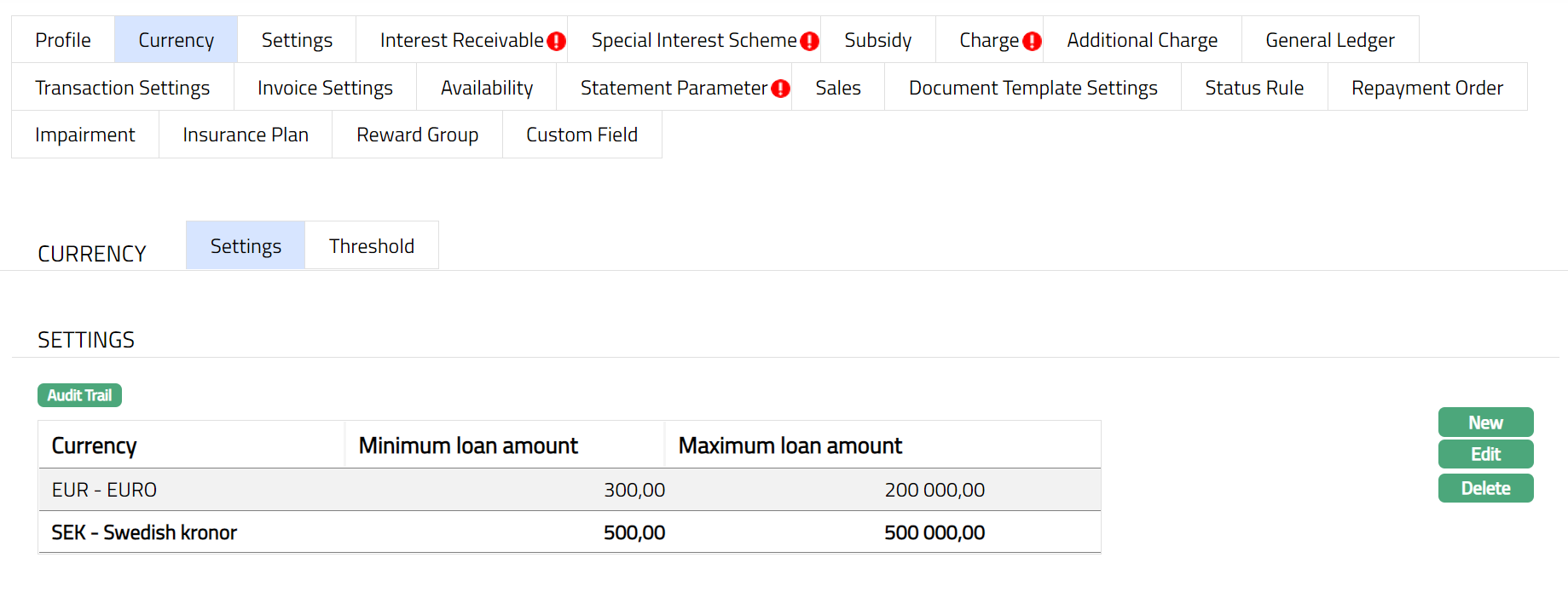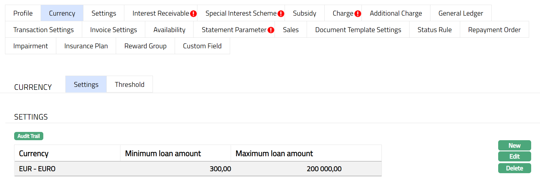 Loan Account can be activated only when the mapped collateral / limit amount >= EUR 75 000.00Enter the Minimum interest rate for the loan accounts under the Product.