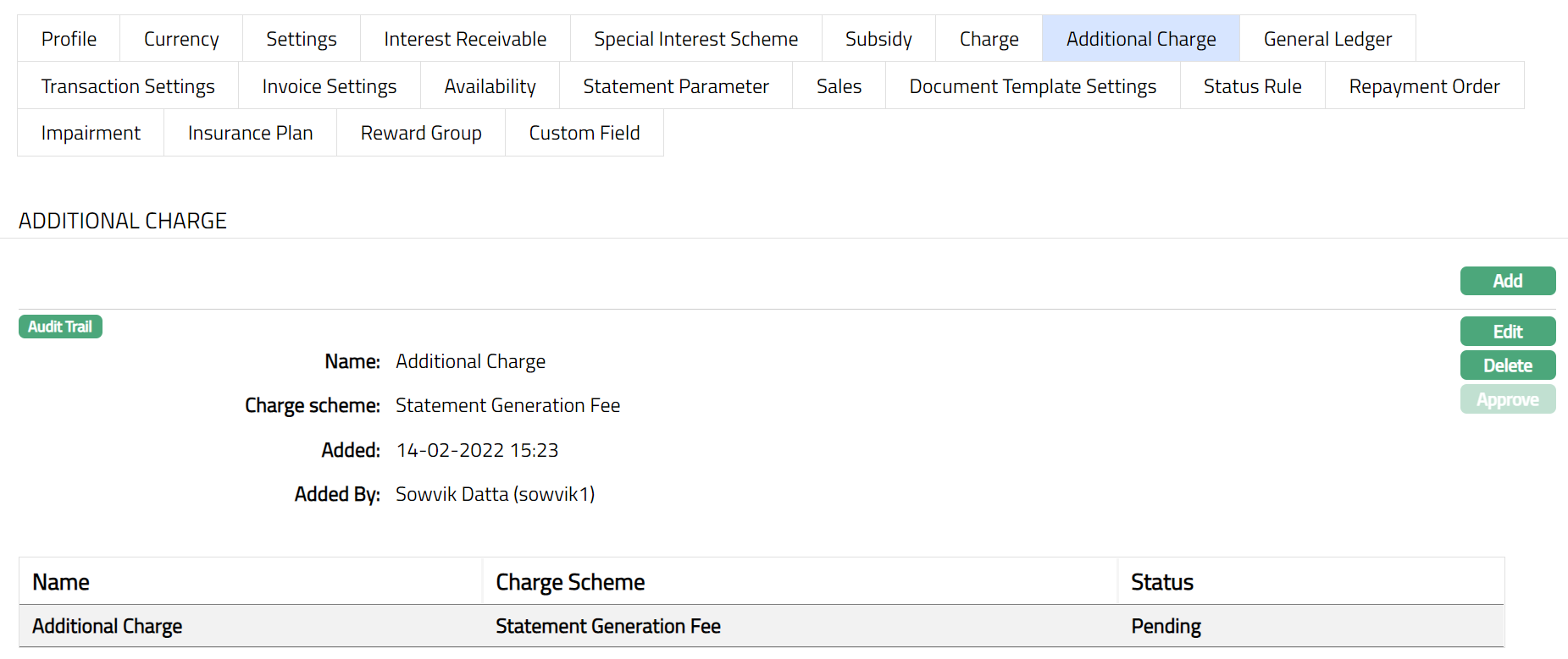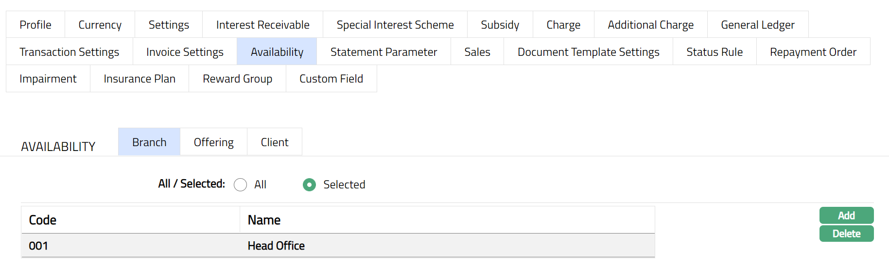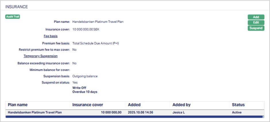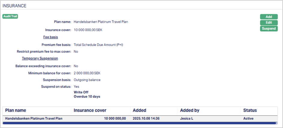 Once saved, the Insurance Plan is linked to the Product and has an Active Status. Such Active Insurance Plans are available to all new loan accounts created under this Product, based on the parameters defined here.