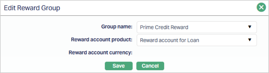You can modify the Reward Group or the Reward Account Product as required. When a new Reward Account Product is selected, the Reward Account Currency field becomes conditionally mandatory and displays only the currencies linked to the selected Reward Account Product.
