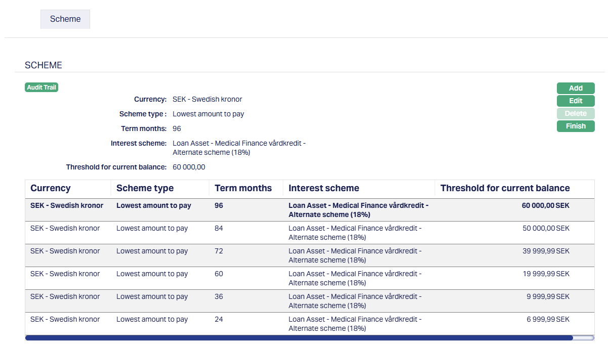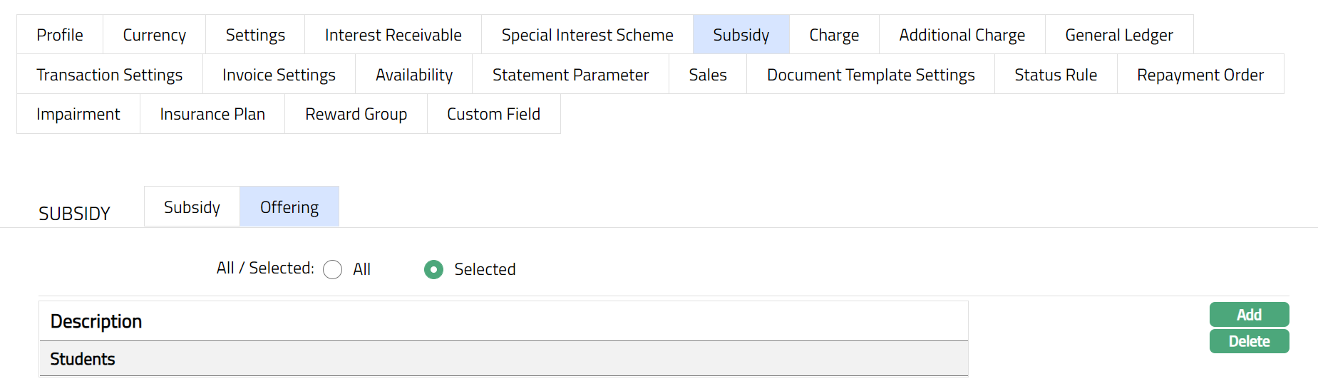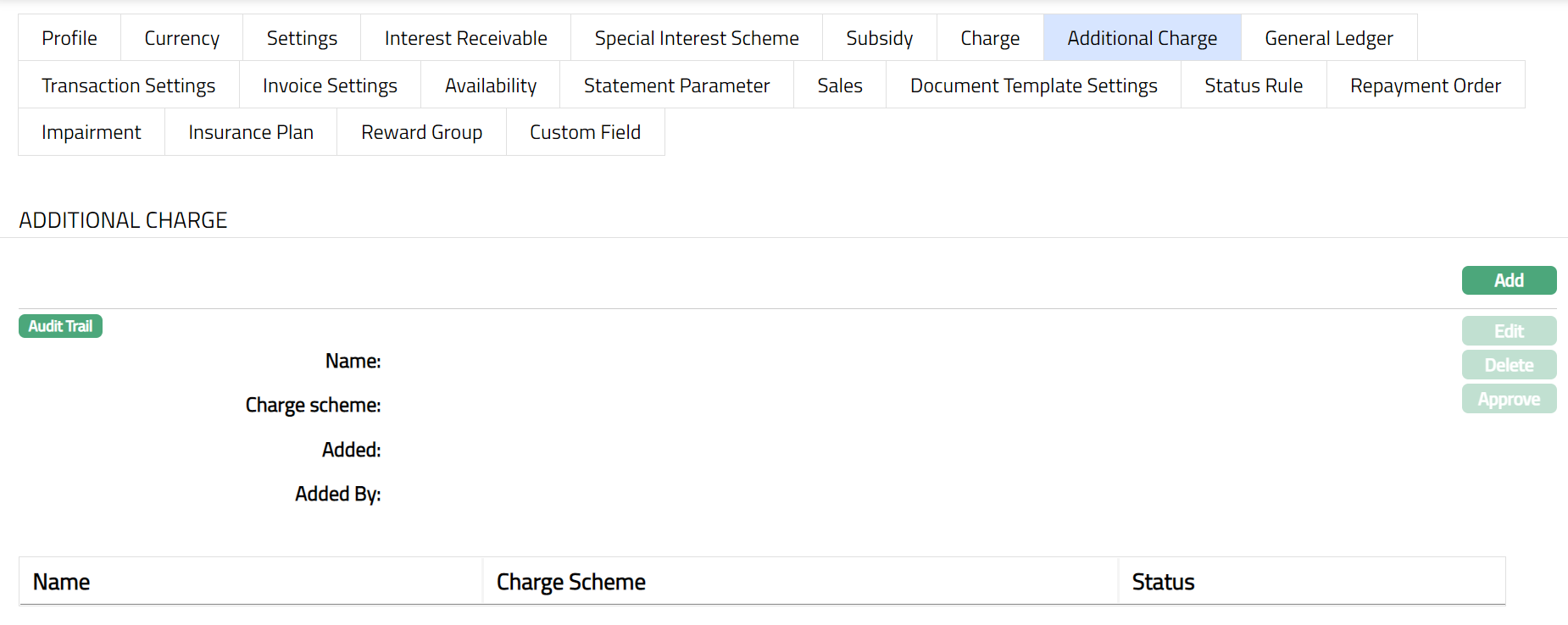 Select the Loan Interest scheme that would be applicable to the accounts under this Product from the drop-down list of Interest schemes maintained under Admin > Pricing > Interest > Interest Scheme. The interest receivable on the principal amount would be derived using this scheme.
