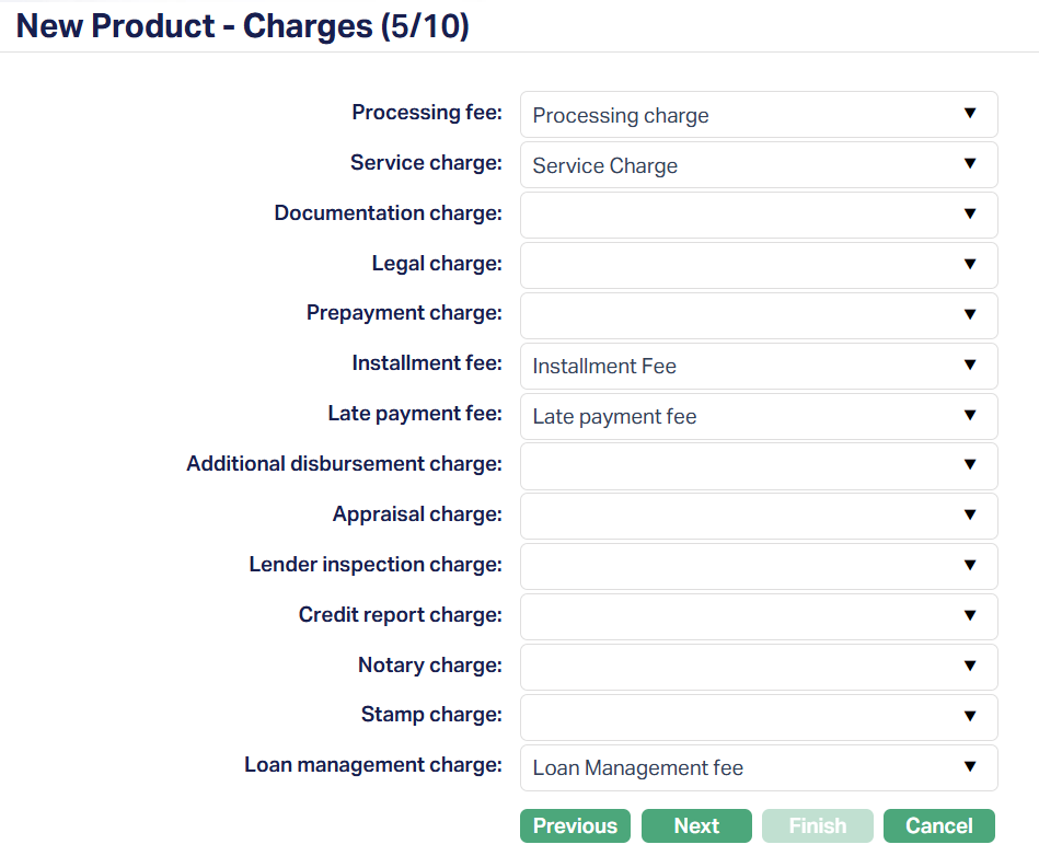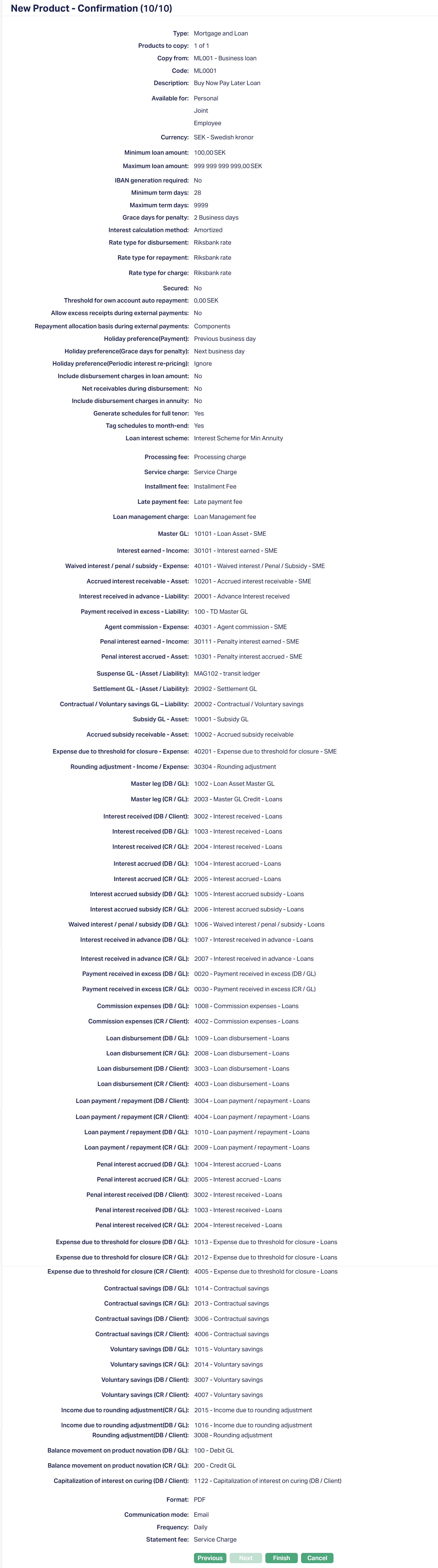 Select Mortgage and Loan as the Type from the drop-down list for the Product.