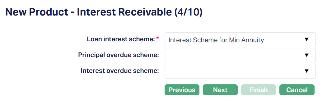 Click Next. The New Product → Interest Receivable (4/10) page appears.