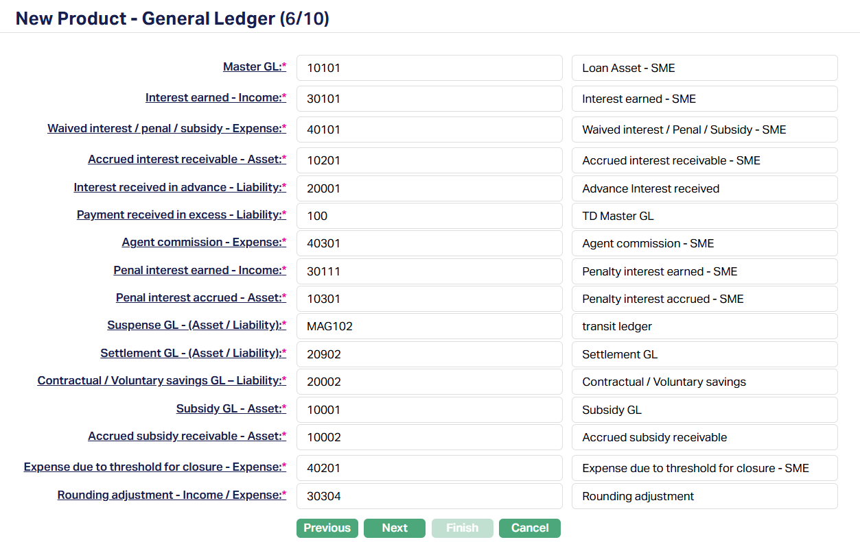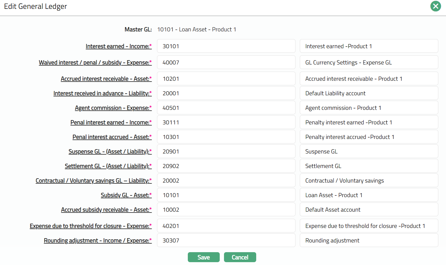 | Principal Overdue | 45% | Master GL | Principal Overdue | 30000 | 13500 | 16500 |