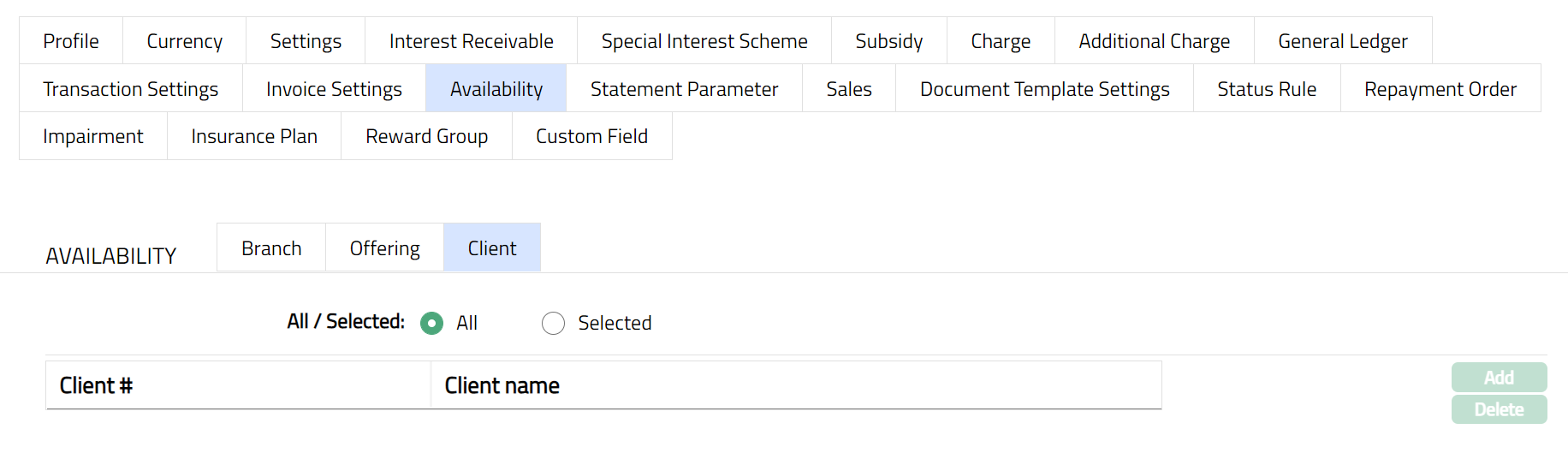 Select the option for Available for field. This will determine the type of clients to which the Product will be available. The options are: