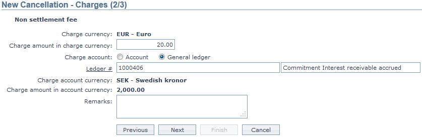 13. Click Next. The New Cancellation → Charges (2/3) page appears.