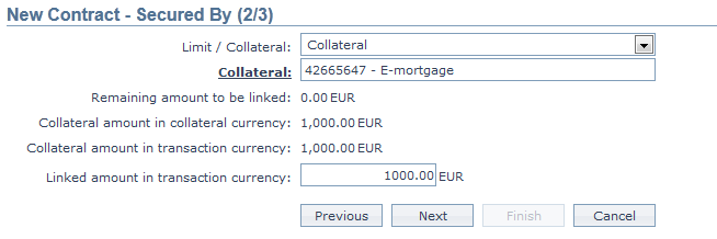 18. Click Next. The New contract → Secured by (2/3) page appears.