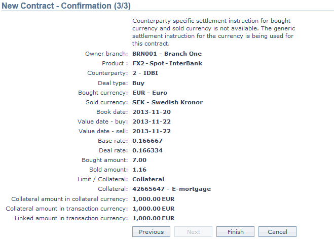 All fields except Collateral and Linked amount in transaction currency are non-editable.
