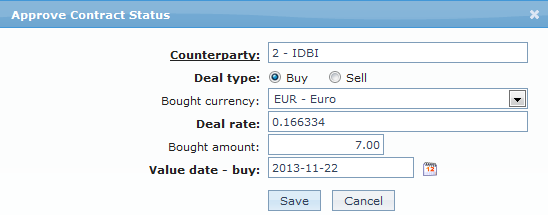 6. Input whether it is buy or sell Deal Type for the Bank by clicking the required Radio Button.